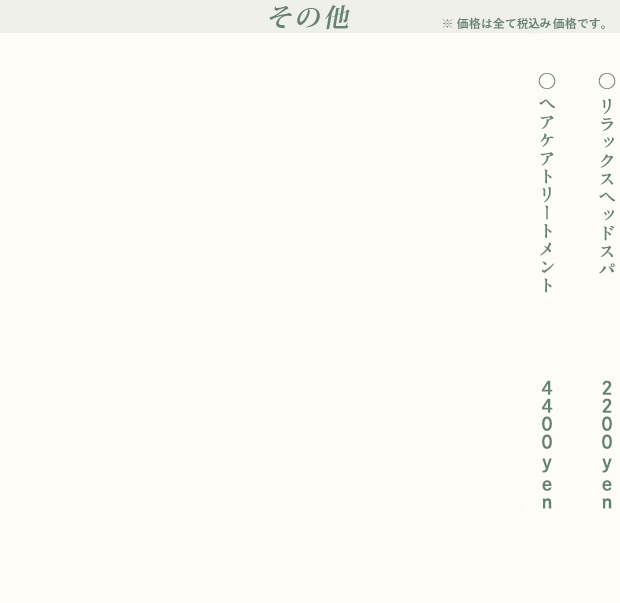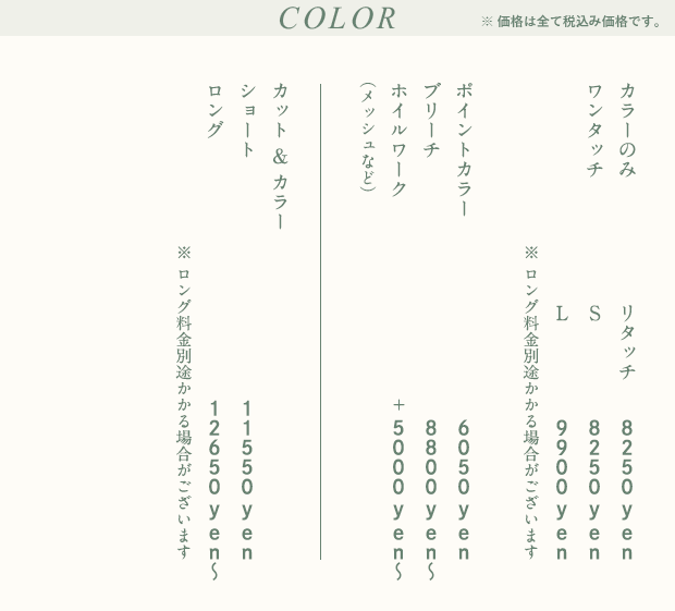 Open:AM10:00~PM20:00 ※最終受付 : 18:00まで